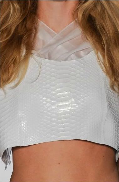 Materiais: Couro, phyton, georgette de seda, gazar e texturas criadas pelo trabalho de crochê, macramé, matelassê e bordados de paetê de couro